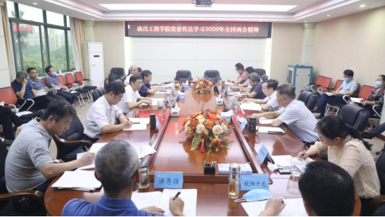 徐兰宾表示,今年的全国两会是在我国疫情防控阻击战取得重大战略成果、统筹推进疫情防控和经济社会发展工作取得积极成效的背景下召开的一次十分重要的会议,意义非凡、影响深远。习近平总书记4次“下团组”时的许多重要论述,高屋建瓴,鼓舞人心,指明方向。李克强总理代表国务院作的政府工作报告旗帜鲜明、主题突出、精炼务实。栗战书委员长在江西代表团审议时的讲话立足实际,情真意切,饱含了对老区人民的期盼和关爱。他强调,学校各级党组织要通过党委理论学习中心组学习、教职工政治理论学习、“三会一课”等多种形式认真学习两会精神,深刻领会习近平总书记重要讲话精神;要认真贯彻落实两会精神,坚决落实“六稳”“六保”工作要求,全力做好当前毕业生就业工作;要围绕国家脱贫攻坚目标任务,充分发挥高校服务企业、服务地方经济的社会功能,做好相关帮扶工作;要结合学校工作实际,统筹做好常态化疫情防控和学校事业发展各项工作,坚持以师生为中心,不断推进学校治理体系和治理能力现代化,为建设高水平水利特色大学、办人民满意的教育积极贡献力量。(文/徐金兰 图/潘旭)