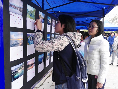 本次活动项目包括水文化书画摄影作品展、节水爱水知识竞答、现场书法体验和观众投票等。活动现场共展出来自全校各学院的书画摄影作品200余幅,前来观展的师生在志愿者的引导下纷纷为喜爱的作品投票。现场水文化书法体验及水文化知识有奖竞答将活动推向高潮。
