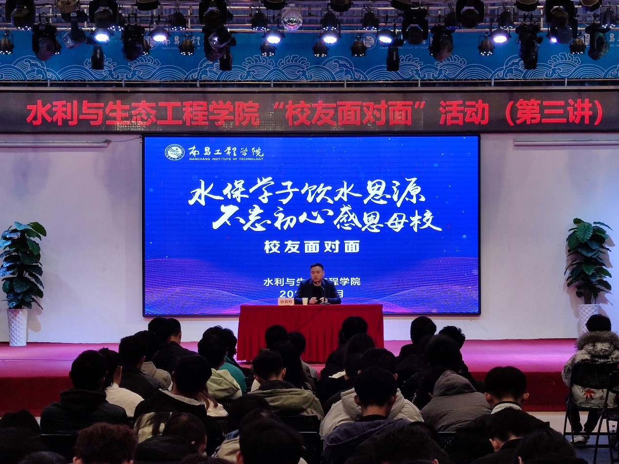12月11日,水利与生态工程学院在大学生活动中心多功能厅开展以“水保学子饮水思源 不忘初心感恩母校”为主题的“校友面对面”第三期活动。我校2004级水土保持与荒漠化防治专业校友、宁波中流工程设计咨询有限公司负责人钟莉煌为学院水土保持与荒漠化防治专业近200名学生讲述求学、从业和创业经历,分享在专业学习和事业发展方面的经验和感悟。
