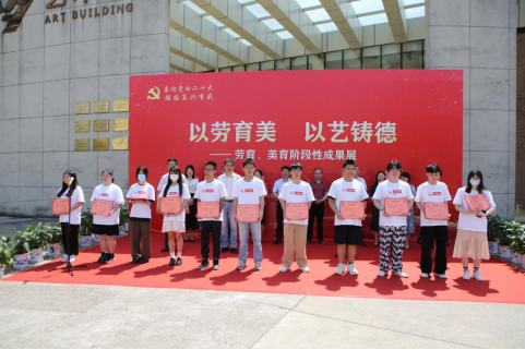 6月8日,我校“以劳育美 以艺铸德”劳动教育、美育教育阶段性成果展在艺术楼举办。校长汪胜前出席活动并宣布展览开幕,校党委副书记吴泽俊,副校长李培生、周敏丹出席活动,校纪委书记殷安全主持展览开幕式并宣读优秀毕业设计获得者名单,副校长陆伟锋向活动致辞,相关部门负责人及人文与艺术学院50余名师生代表参加活动。