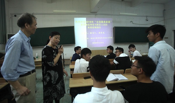 5月24日下午,2018年“全国最美家庭”获得者、南昌市西湖区优秀共产党员、劳动模范伍学花夫妇在南C102教室给我校青年大学生作报告。报告会由马克思主义学院程宇昌博士主持。报告会前,马克思主义学院院长陈付龙、副院长陈娇云与伍老师夫妇进行了亲切交谈。