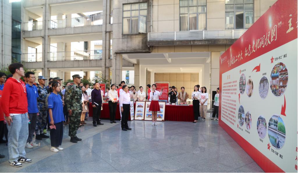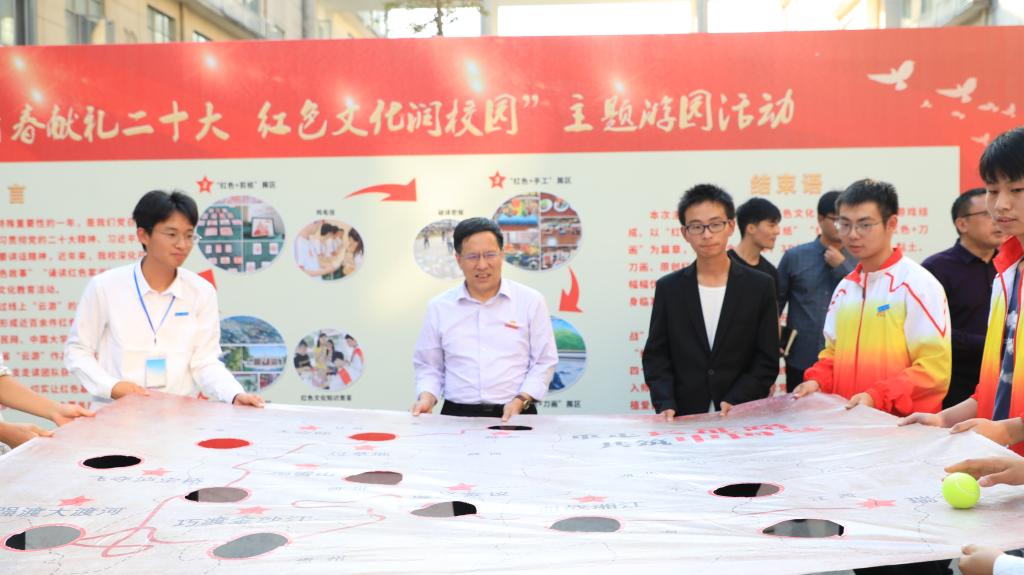 11月11日下午,我校在大学生活动中心户外广场开展“青春献礼二十大 红色文化润校园”主题游园活动。校长汪胜前,副校长周敏丹,学生工作部(处)负责人,相关学院党委书记、副书记,师生代表共200余人参加活动。