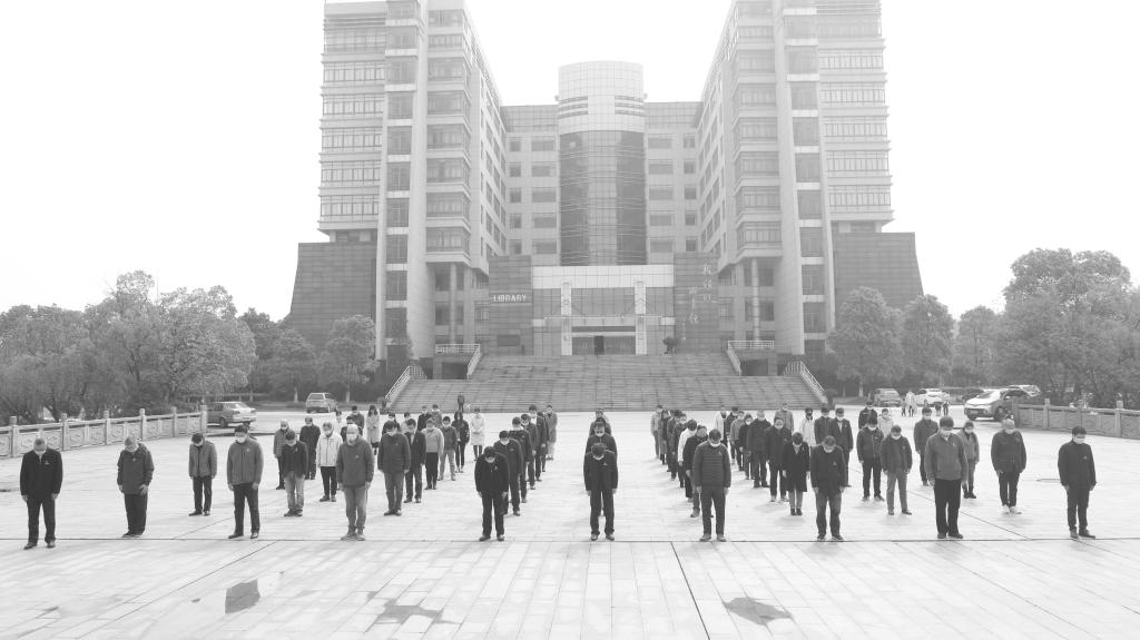 10时起,在校园抗疫一线值守的校领导、党员干部和教师在水文化广场开展哀悼活动,集体默哀3分钟。活动结束后大家表示,在抗疫斗争中牺牲的烈士们奋不顾身,用自己宝贵的生命保卫人民生命安全和身体健康,我们要永远铭记他们光辉名字和先进事迹,传承他们无私奉献的崇高精神,在工作岗位上更好地作出自己的贡献,推动学校事业改革发展不断前进。(图/文 潘旭)