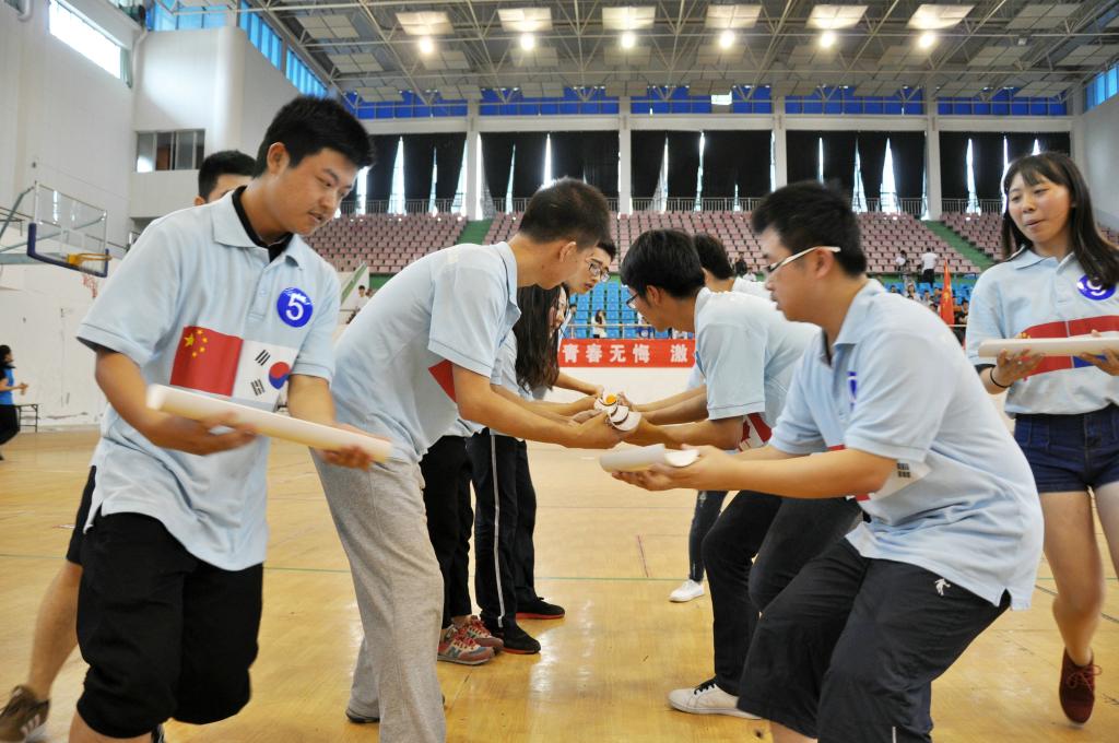 开幕式结束后,我校第四届大学生心理素质拓展大赛拉开帷幕。此次比赛包括团队展示、竞赛项目、心理感悟与分享三个环节,来自各学院及学生社区的23支代表队先后进行了“无敌风火轮”、“能量传输”、“极速60秒”、“七人八足”和“穿越电网”等心理素质拓展项目。经过激烈角逐,经济贸易学院“最好的我们”代表队摘得本次比赛桂冠。(文/武厚 图/唐婉莹)