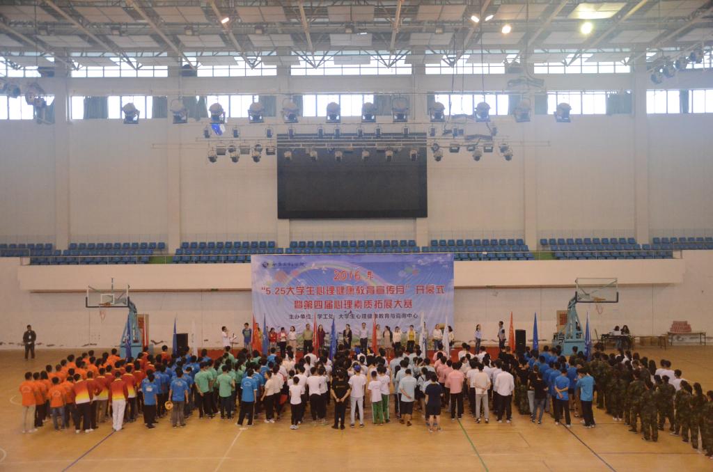 5月7日上午,我校在体育馆举行“5.25大学生心理健康教育宣传月”开幕式暨第四届心理素质拓展大赛。校学工处负责人,各学院学工办、学生社区负责老师,心理辅导员,各学院学生代表及参赛学生共计500余人参加了此次活动。仪式由校大学生心理健康教育与咨询中心副主任杨铖主持。
