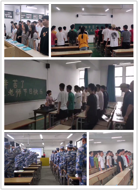 一声问候。全校各班级通过课堂向任课老师送上清晨的第一声问候。上午8点半,上课铃响,全校各教学楼,所有学生起立,向老师深深鞠躬,“老师,您辛苦了!祝您教师节快乐!”来自学生们的问候声在教学楼里回荡。