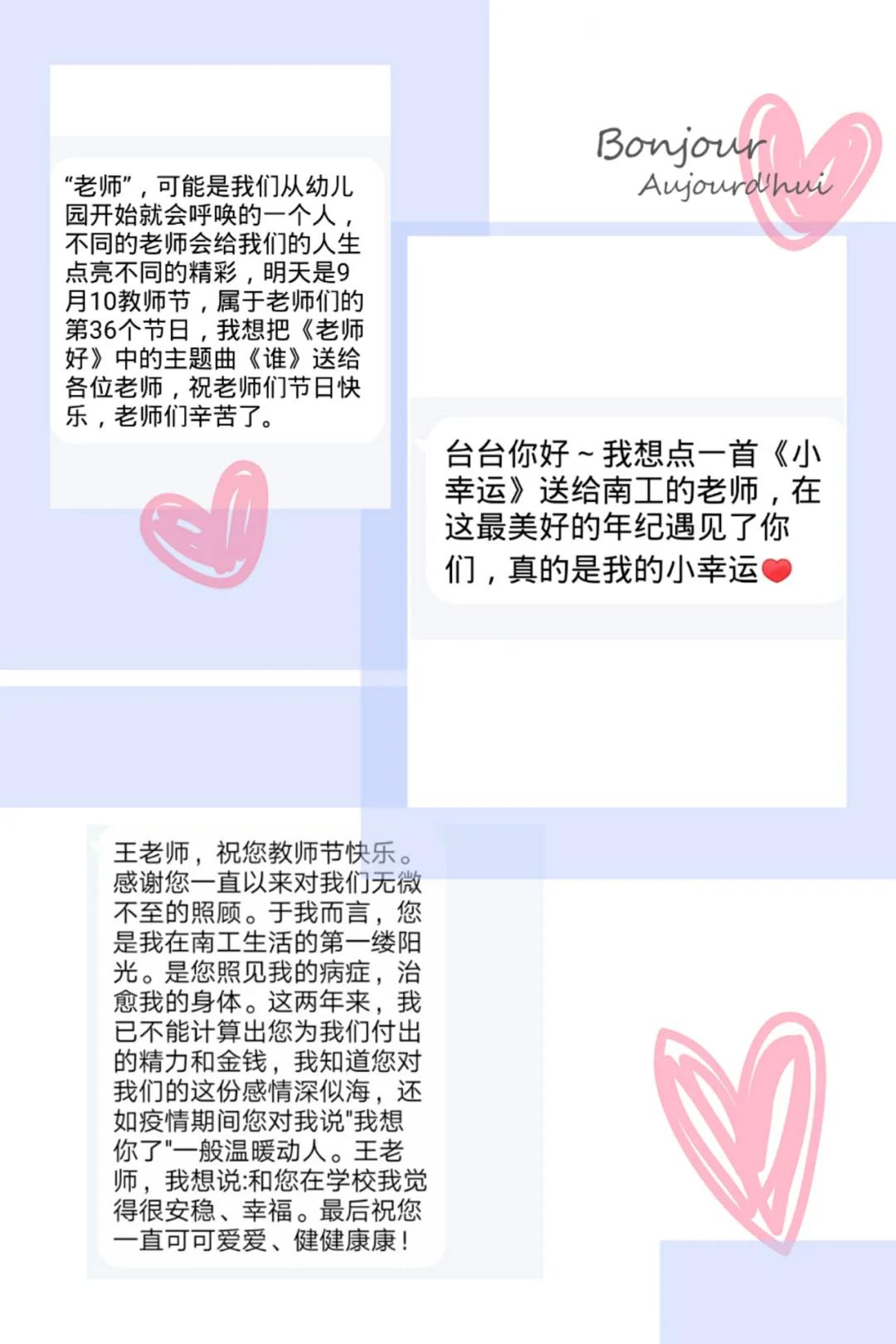 一首歌曲。广播台推出教师节特别专辑,通过电台传递南工学子对老师的祝福,营造浓郁的节日氛围。(文/胡洁 图/青年传媒中心)