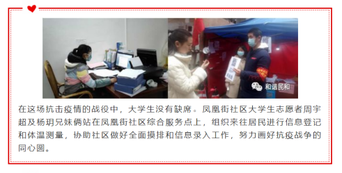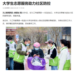 2019级通信技术(武警)1班周宇超同学,他和妹妹杨玥在退伍军人爷爷的带领下,报名参加江西省南昌市凤凰街社区防疫抗疫志愿服务。周宇超和家人一起积极参与地毯式疫情摸排工作,向辖区居民宣传防疫知识,督促居民佩戴口罩,协助社区干部为居民购买防疫物资,在社区办公场所、公共楼道等防疫重点部位进行每日消杀,负责两个卡口管控和居民信息统计上报。当地媒体对他们的抗疫事迹进行了报道。