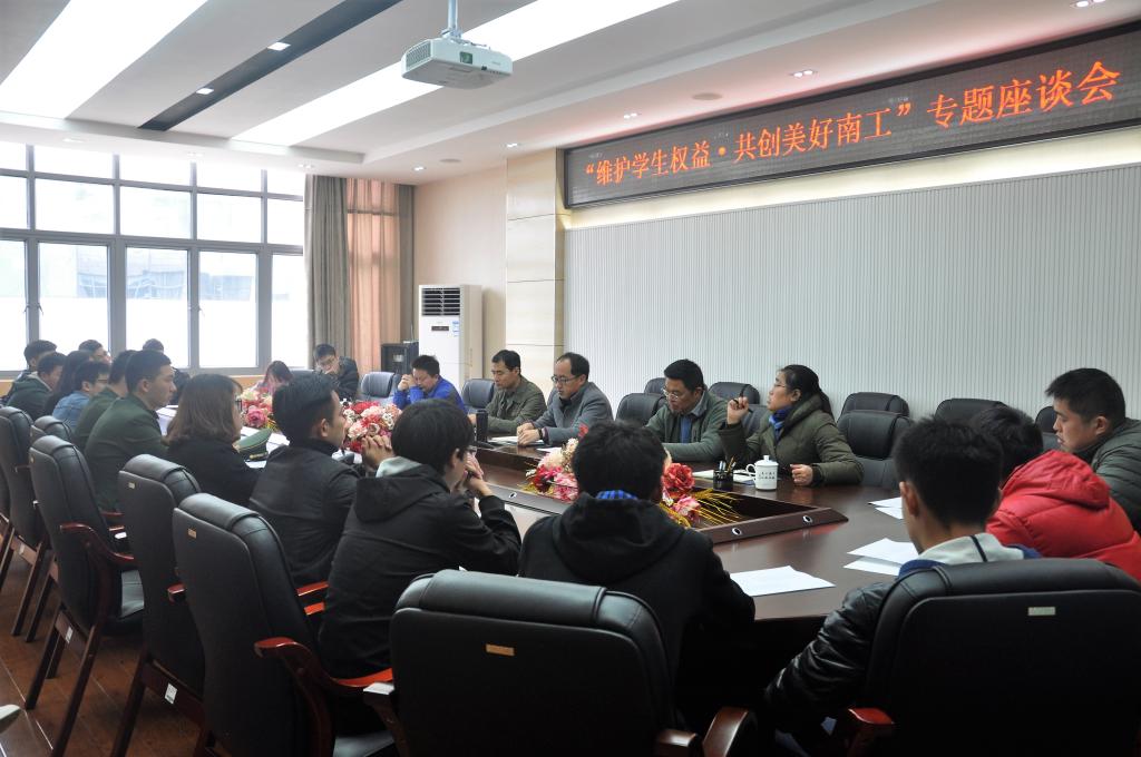3月15日,校团委、学生会在大学生活动中心A310会议室召开“维护学生权益•共创美好南工”专题座谈会。教务处、学生工作处、后勤保障处、保卫处等部门负责人出席会议,来自全校12个学院的24名普通学生代表参加会议。会议由校团委书记宋志刚主持。