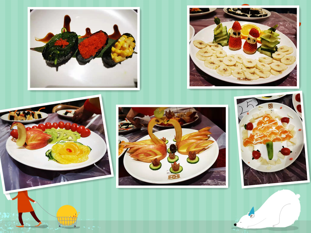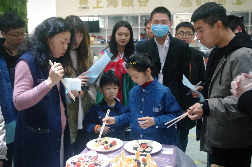 校街舞社开场舞拉开比赛帷幕。参赛选手通过团队协作,在规定时间内呈现了一道道精致美味、造型美观、创意十足的寿司和水果沙拉。评委们根据味道、摆盘、色彩和创新五个方面给参赛选手打分。最终,来自国际教育学院2021级电气工程及其自动化(中韩)专业王雪芸等20名(5组)同学获一等奖,国际教育学院2019级电气工程及其自动化(中韩)钟溪林等40名(10组)同学获二等奖,外国语学院2018级法语专业雷明珠等60名(15组)同学获三等奖。