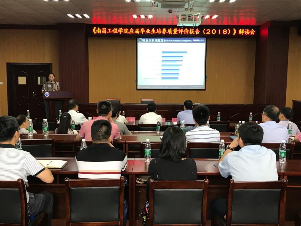 6月20日下午,我校在大学生活动中心B100举行《南昌工程学院应届毕业生培养质量评价报告(2018)》解读会,特邀麦可思公司刘九坤研究员作解读。校长金志农出席会议并讲话,校纪委书记梁钢、副校长吴泽俊和胡敏出席会议,会议由招生就业处处长熊丽克主持。党委(院长)办公室、团委、教务处、学生工作处、招生就业处、高等教育发展中心和各教学单位负责人及教师代表参加了会议。