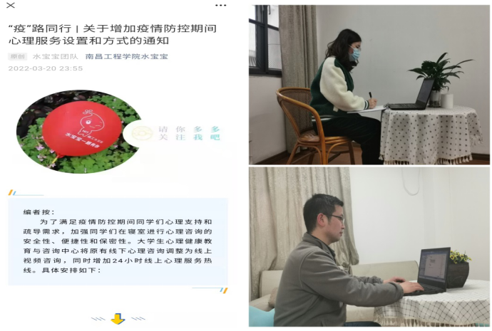 心理中心根据工作实际,第一时间增加疫情防控期间心理服务设置和方式,在将线下心理咨询调整为线上视频咨询的基础上,开通24小时线上心理服务热线,通过QQ文字和语音的方式,及时疏解师生不良情绪,24小时不间断满足师生心理支持需求。