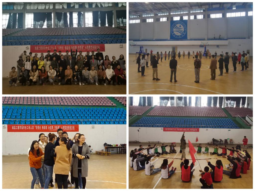 4月2日下午,由大学生心理健康教育与咨询中心、江西省高校辅导员名师工作室联合举办的我校学生工作人员“学党史 悟思想 办实事 开新局”心理素质拓展活动在体育馆举行,60余人参加活动。