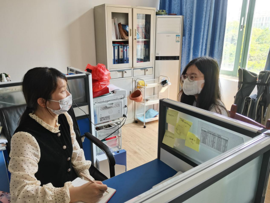 学生工作部(处)辅导员袁玉雯是核酸检测现场协调队伍中的一员。她以实际行动践行高校辅导员誓言,主动加入核酸检测协调队伍,不顾14栋是隔离楼栋的风险,每次值岗都提前到场。同时,作为学生资助管理中心的老师,她利用微信群、短信、QQ群等各种平台随时了解和掌握疫情期间学生身体和生活状况,尤其关注家庭经济困难学生的生活,积极策划临时困难补助,把关爱送给每位学生,让疫情导致家庭生活困难的学生得到实实在在的帮助。在采集点,她主动协助医护人员、志愿者完成前期准备工作,搬运物资、维持秩序、扫码登记、讲解流程、后勤保障等,与防疫工作人员一起,全力营造了一个平安和谐的检测环境,为校园筑牢抗击疫情“防护墙”贡献力量。
