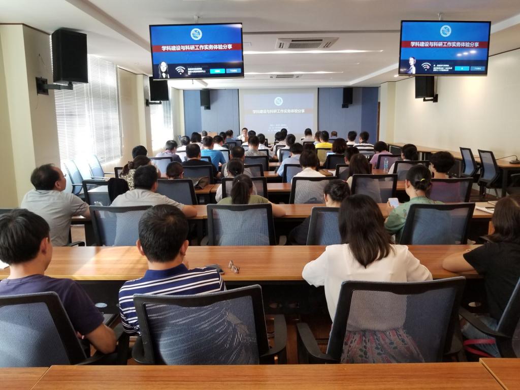 报告主要分为“学科”和“科研”两个部分。在“学科”部分,金志农对学科的概念、分类、水平和建设标准作了详细的讲解,并结合第四轮学科评估、省一流学科绩效评估和校一流学科建设等工作,重点分析了学科建设的重要性,以及我校在学科建设中存在的问题。在“科研”部分,金志农对科研的目的、科研团队的重要性、科研项目申报、科技奖励申报等内容作了详细阐述。他结合自身经验介绍了开展团队建设和申报科研项目的方法,并对科技奖励申报的程序和注意事项作了重点说明。