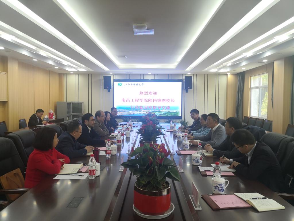 3月11日上午,副校长陆伟锋带队赴江西中医药大学开展教学工作调研,与江西中医药大学副校长刘潜、杜建强及相关部门负责人交流座谈。会前,江西中医药大学党委书记徐兰宾会见了陆伟锋一行。