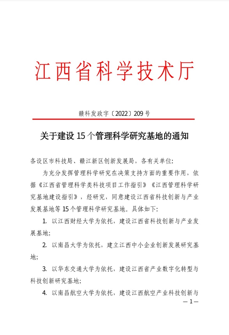 12月6日,江西省科学技术厅印发《关于建设15个管理科学研究基地的通知》,我校工商管理学院申报的“水资源水环境与高质量发展研究中心”获批立项,我校获批为江西省水资源水环境与高质量发展研究基地。(文/图 崔建锋 唐厚兴 责任编辑 潘旭 徐金兰)