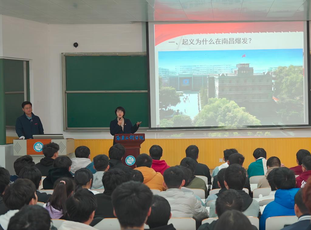 3月29日,我校中国近现代史纲要教研室贺超海老师与南昌八一起义纪念馆成列保管部主任刘小花,共同围绕“八一南昌起义与中国革命道路的探索”这一主题,在2022级工业工程专业班级开展了一堂别具风格的“双师同堂”示范课。刘小花基于南昌八一起义真实的历史资料和现场文物展示,讲述起义的历史地位和意义。贺超海老师在“史”的基础上导出“论”,加强了学生对于革命道路的理解与认同。