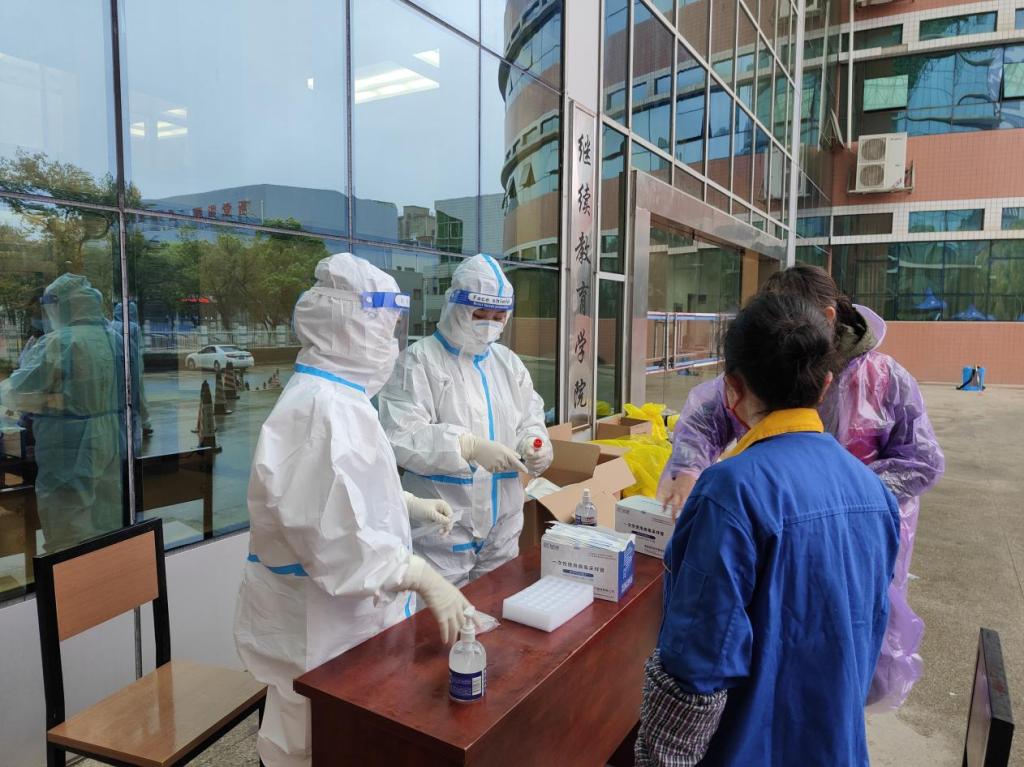 检测现场,师生保持一米安全距离有序排队,在志愿者的引导下积极配合医护人员完成采样并迅速离场,充分展现出彭桥校区全体师生同心战“疫”、众志成城、闻令即动、服从指挥的良好风貌。