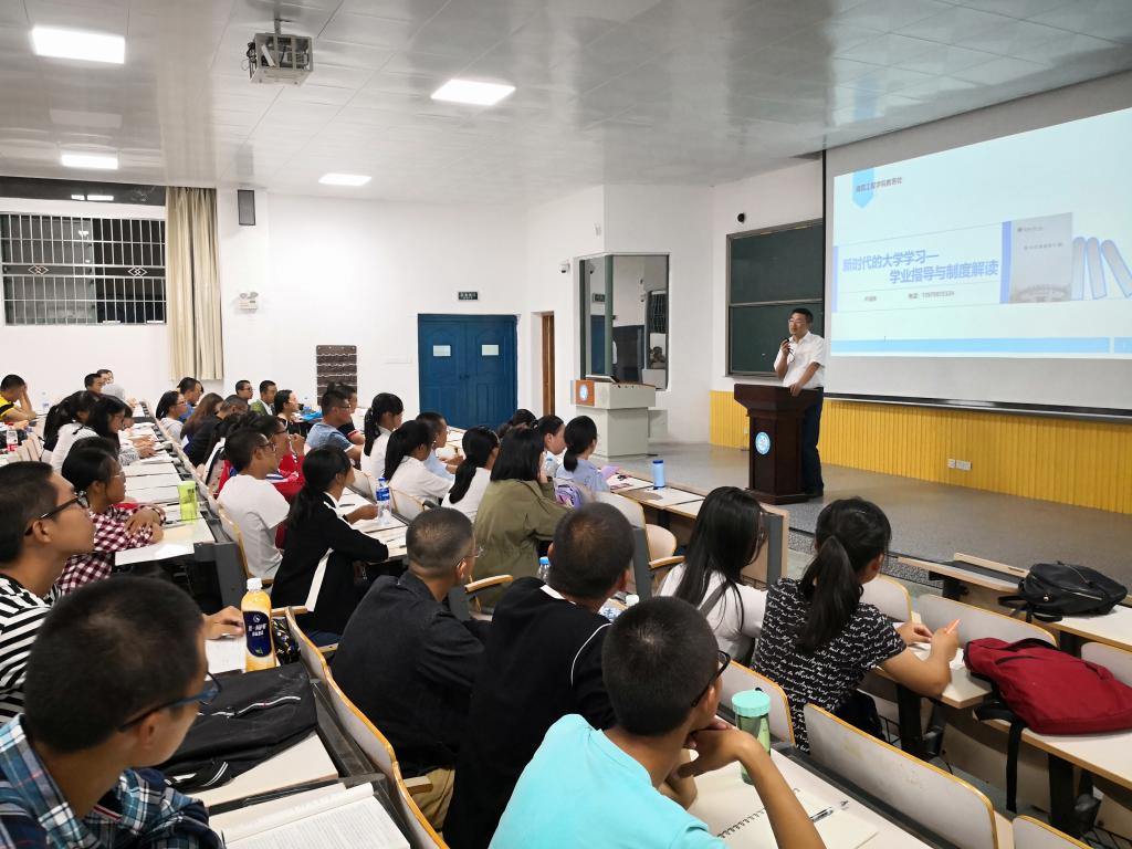 为进一步增强党员服务意识,拓展服务渠道,扎实开展教学服务工作,9月28日晚,教务处党支部在教学南楼C105教室组织开展了以“新时代的大学学习——学业指导与制度解读”为主题的党日活动。教务处全体教师党员、全校新生班级学习委员、学习促进协会会员等近200人参加活动。