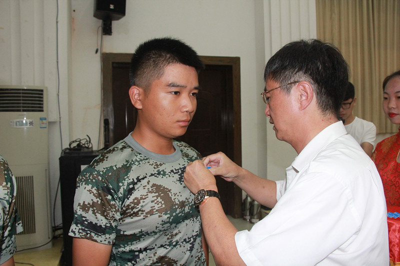 教师代表郭玲老师和新生代表2018级水保专业孔超同学分别发言。金志农校长和熊起明校长一同为新生佩戴了南昌工程学院校徽。