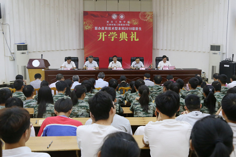 9月26日,南昌工程学院与江西环境工程职业学院联办应用技术型本科2018年新生开学典礼在赣州隆重举行。参加典礼的学校领导有我校校长金志农、副校长汪胜前,江西环境工程职业学院校长熊起明、副校长叶超飞等。江西环境工程职业学院党委书记肖忠优主持典礼仪式。