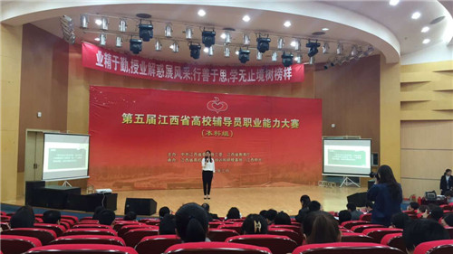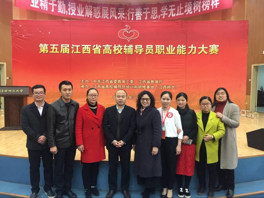 3月28日至29日,由中共省委教育工委、江西省教育厅主办,江西师范大学承办的第五届江西省高校辅导员职业能力大赛落下帷幕。代表我校参赛的辅导员焦晶、王平、查美云、车兰兰老师突破重围,凭借扎实的知识储备、过硬的职业能力和昂扬的精神风貌,沉着应对、表现突出,从来自省内41所高校135位选手中脱颖而出,获得了评委、选手和观众的一致认可,其中焦晶、王平、查美云老师荣获全省二等奖,车兰兰老师荣获全省三等奖。