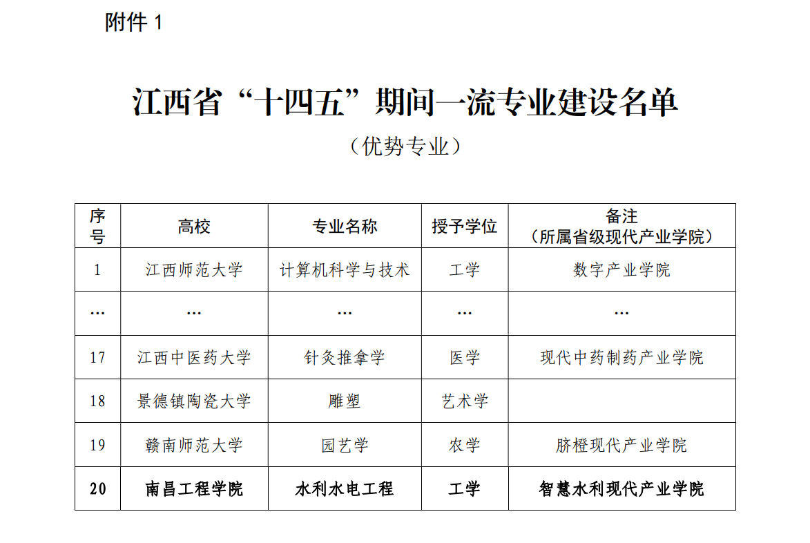 近日,江西省教育厅印发通知,我校获批省“十四五”期间一流专业4个,水利水电工程获批优势专业,机械设计制造及其自动化等3个专业获批特色专业,获批层次和数量位居全省高校前列。