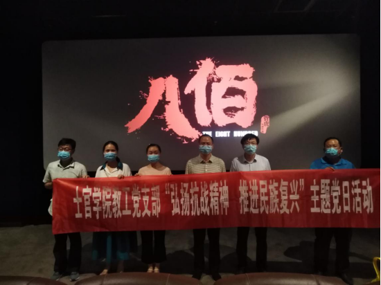 为强化爱国主义教育,发扬伟大的抗战精神,9月8日下午,士官学院教工党支部组织全体教工党员开展 “弘扬抗战精神,推进民族复兴”主题党日活动——观看抗日题材影片《八佰》。