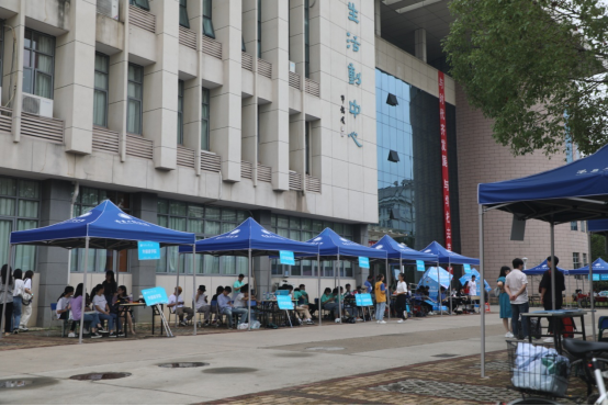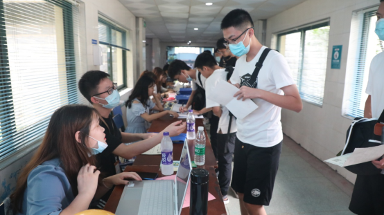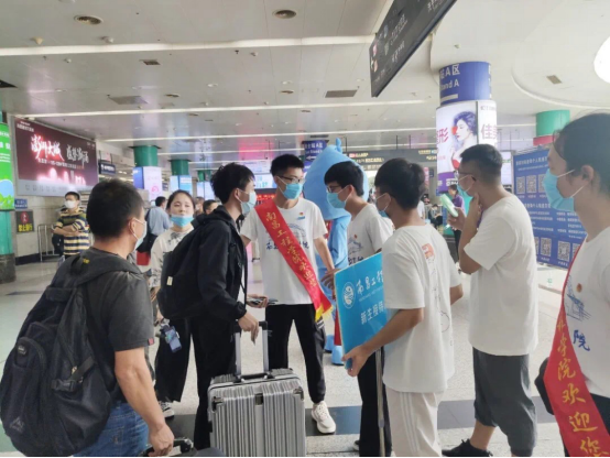 迎新现场,新生及家长们在志愿者的引导下,出示健康码、完成体温测量,有序进入校门;校园主干道及新生宿舍区设立多个志愿服务点,为新生提供路线引导、搬运行李等服务;在大学生活动中心设立的迎新咨询台,各学院工作人员耐心细致地为新生和家长讲解入学注意事项。学校还在南昌站、南昌西站以及昌北机场设置新生接待处,广大青年教师组建的爱心志愿服务车队,第一时间为新生送上“到家”的温暖。