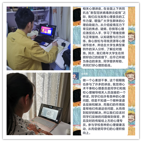 本次培训面向全校专兼职心理教师、学工保卫干部、辅导员、班主任、校院心素部骨干、班级心理保健员等群体,共计500余人参加培训。结合疫情防控工作,培训安排了《疫情防控工作中如何用沟通进行情绪疏导》《疫情期间辅导员的情绪压力管理》《危机下的心理调适》《疫情压力下的大学生心理调整》等9场线上讲座。