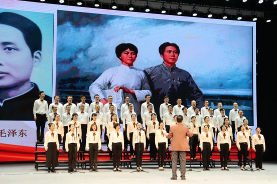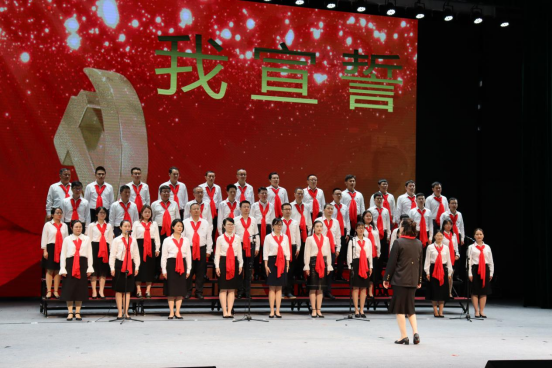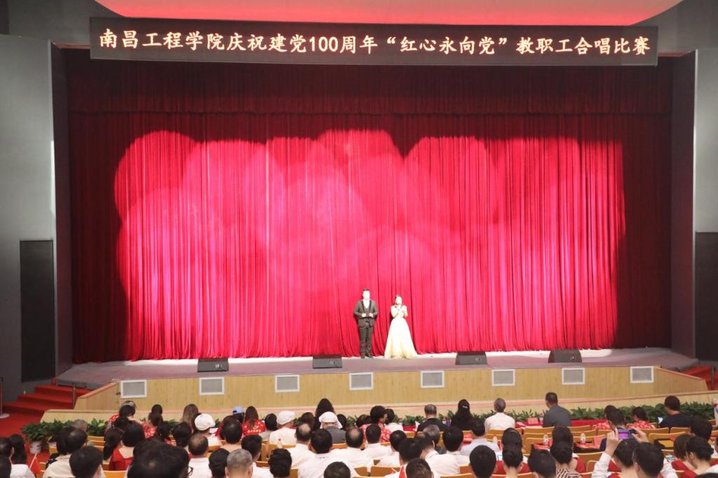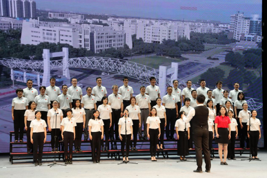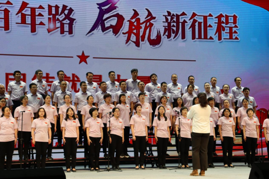 5月18日下午,由校工会主办、人文与艺术学院分会协办的庆祝建党100周年“红心永向党”教职工合唱比赛在瑶湖艺术中心举行。校党委副书记吴泽俊,副校长汪胜前、樊后保、陆伟锋出席活动并和教职工一起参加演唱,来自16个基层分会的14支参赛队伍近1000人参加活动。