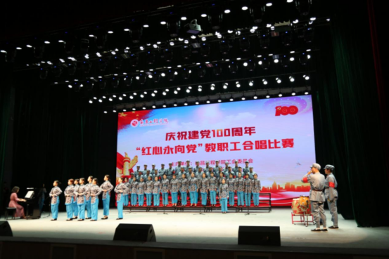 比赛中,各参赛队整齐划一,富有创意地演绎着一首首脍炙人口、耳熟能详的经典红色歌曲,唱出了广大教职工对党和祖国的无限热爱及共筑中华民族伟大复兴中国梦的坚定信心。经过激烈角逐,人文与艺术学院分会荣获一等奖;部门联合一分会、机械与电气工程学院分会荣获二等奖;部门联合二分会、信息工程学院分会、国际教育学院与体育教学部分会、外国语学院分会、水利与生态工程学院分会荣获三等奖;彭桥校区与马克思主义学院分会、图书馆分会荣获优秀组织奖。