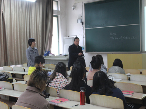 2月22日,新学期开学第一天,在家校领导张立青、梁钢、吴泽俊、汪胜前、李明、樊后保、胡敏与教务处、相关学院负责人一同深入课堂一线听课,检查开学各项教学准备工作。