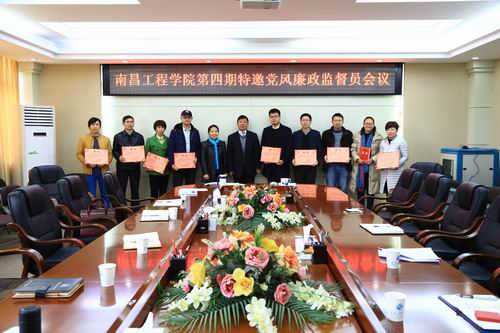 上午,学校召开党风廉政监督员会议。校党委书记刘谟炎为9名第四期党风廉政监督员颁发聘书并讲话,校纪委书记梁钢主持会议。