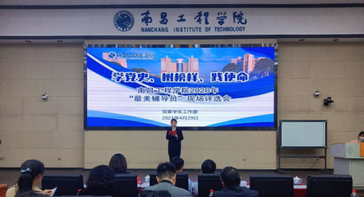 4月29日,我校“学党史、树榜样、践使命”2020年“最美辅导员”现场评审会在北教学楼C105教室举行,副校长周敏丹出席活动。第十二届“高校辅导员年度人物”、2020年度江西省高校“最美辅导员”王静,江西农业大学和南昌航空大学学工部负责人,党委宣传部、党委组织部(党校)负责人应邀担任大赛评委,辅导员和学生代表180余人观摩活动。