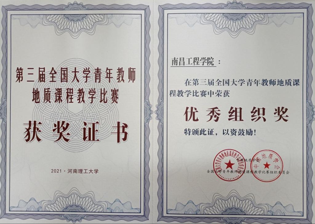 5月15日至16日,由中国地质学会主办,河南理工大学承办的第三届全国大学青年教师地质课程教学比赛在河南焦作举行。我校水利与生态工程学院教师刘晓荣获二等奖,我校获优秀组织奖。
