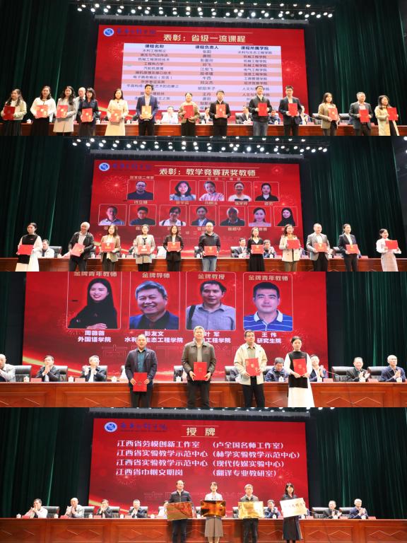 会议表彰了我校获评的2022年省级一流课程、江西省高校金牌教师、省级及以上教学竞赛获奖教师、江西省劳模创新工作室、江西省实验教学示范中心、江西省巾帼文明岗等先进集体和个人。谢云敏、万芬芬、曾宇露等3位教师分别从专业建设、课程建设、教师成长等方面作了经验分享与交流。