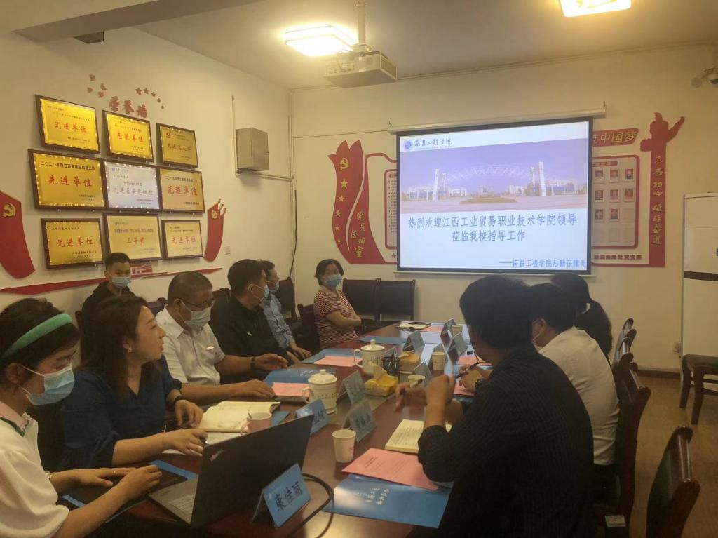 5月27日上午,江西工业贸易职业技术学院副院长宋小兵一行4人来我校交流膳食管理工作,副校长李培生、后勤保障处相关负责人参加活动。