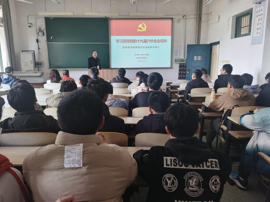 12月21日下午,副校长樊后保在国际教育学院所联系班级宣讲党的十九届六中全会精神,2018级电气工程及其自动化专业全体学生、国际教育学院教师党员近百人聆听了宣讲。