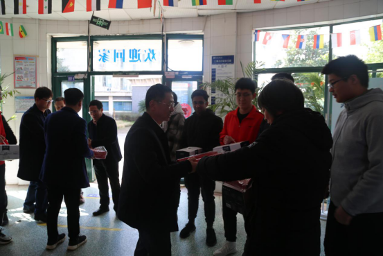 2月13日农历正月初二,校长金志农、副校长汪胜前深入学生公寓,通过网络视频与学生家长亲切连线,向他们送去新春祝福,向因疫情原因“就地过年”的同学们送上“新春慰问品”和“防疫爱心包”,与同学们分享学习生活趣事、深入细致交流,现场一片欢声笑语、其乐融融。相关职能部门同志和校园值班值守人员参加活动。