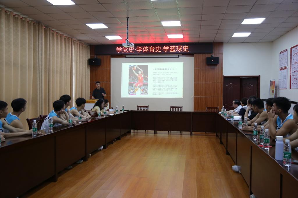 体育教学部副主任贺权从红色篮球运动、新中国篮球运动及我校篮球运动发展三个方面介绍了建党百年来篮球发展的历程,给大家上了一堂生动的“篮球史”课。