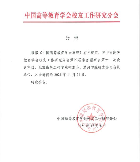 近日,中国高等教育学会校友工作研究分会第四届常务理事会第十一次会议召开。会议审议通过了南昌工程学院校友会等2家高校校友工作机构成为会员单位。