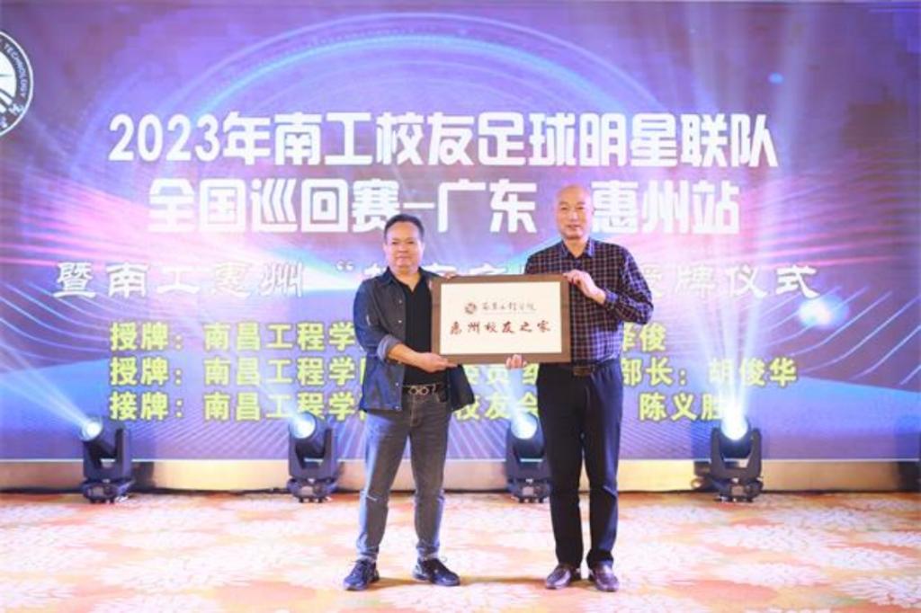 3月4日晚,我校首个校外校友之家——“南昌工程学院惠州校友之家”授牌暨校友足球赛颁奖仪式在惠州举行。原校长、学校校友会名誉会长王志锋出席活动并转达校党委书记金志农、校长汪胜前对广大校友的亲切问候,对惠州校友会此次承办的活动给予了充分肯定和高度评价,校党委副书记吴泽俊出席活动并讲话,校党委委员、党委组织部部长兼校友会秘书长胡俊华向惠州校友会会长陈义胜授牌。