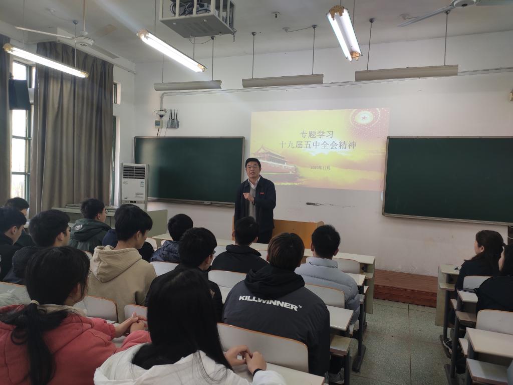 上午,陆伟锋参加“大学生学业规划”主题班会,为同学们宣讲党的十九届五中全会精神。他结合自己的求学经历,勉励同学们要提高政治站位,关心国家大事,锤炼本领,找准国家需要和自身发展的结合点,做到心中有梦想,脚下有力量,为中华民族的伟大复兴贡献力量。