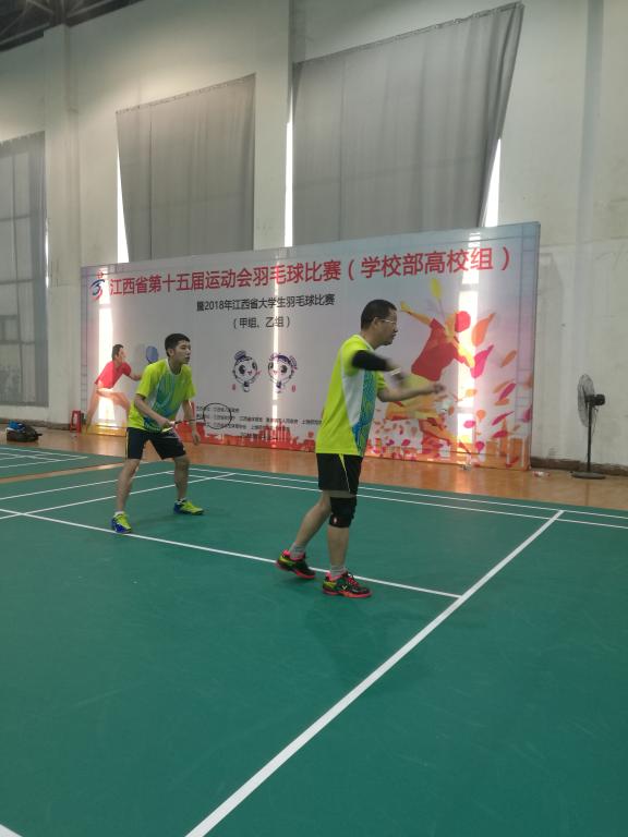 5月23日-28日,江西省第十五届运动会羽毛球比赛(学校部高校组)在上饶师范学院进行。我校派出了以教师为主体的羽毛球队参加了团体比赛。比赛中,我校先后与江西师范大学、江西理工大学、赣南医学院等4所高校的队伍交手比赛,最后以小组第一名的成绩进入八强,并最终名列第7名。(文/图 黄国华)