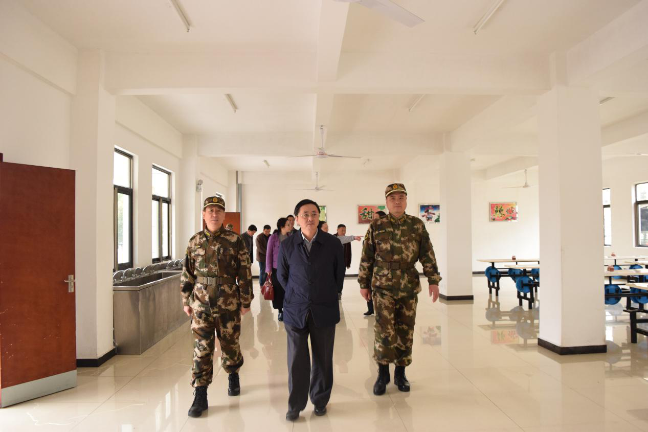 金志农校长在武警水电部队二总队副总队长方金勇陪同下观看了我校首届定向培养士官生表演的警棍盾牌操、应急棍术、战术等,并来到宿舍楼和食堂,详细询问并了解我校士官生在部队的住宿条件、饮食标准等。