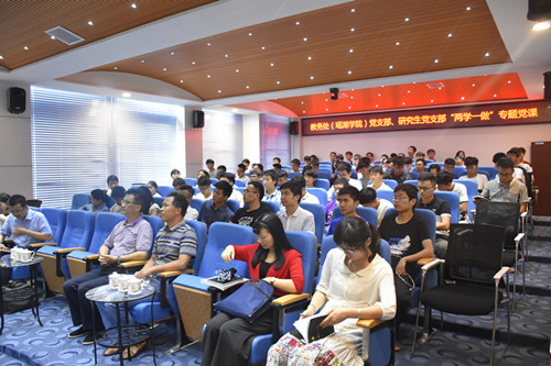 为积极推进“两学一做”学习教育常态化制度化,贯彻好落实好全国高校思想政治工作会议精神,切实加强党员干部和师生思想政治教育,6月13日下午,校党委组织部部长、党校常务副校长、机关党委书记黄华应教务处(瑶湖学院)党支部和研究生处党总支邀请在瑶湖学院明德报告厅为基层党支部党员和瑶湖学院师生上了一堂《谈谈党性修养》的专题党课。机关综合四党支部、教务处(瑶湖学院)党支部、研究生处党总支党员代表和瑶湖学院师生代表100余人参加党课学习。