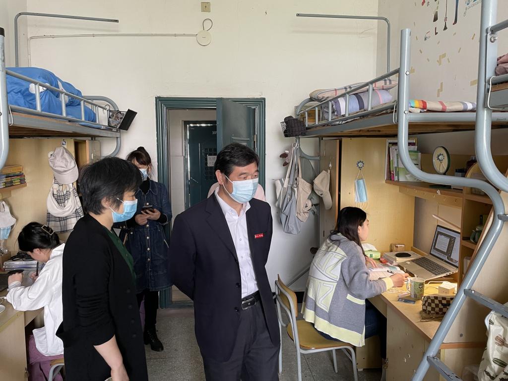 4月6日上午,校党委副书记吴泽俊来到学生社区第1、12栋,了解学生线上学习、生活状况和思想动态,帮助解决遇到的困难。