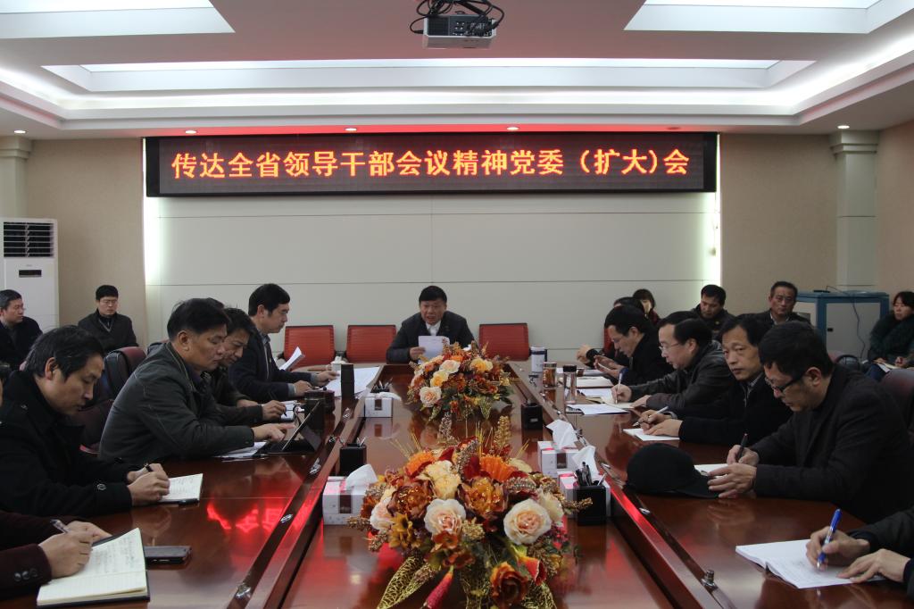 12月20日上午,我校召开党委(扩大)会议,传达全省领导干部会议精神,学校各单位主要负责人参加了会议,校党委书记刘谟炎主持会议。